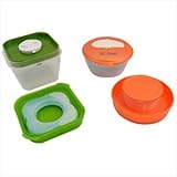 Quality Breakfast Chiller and Salad Shaker Set By Fit and Fresh - Holds 1.5 cups of cereal or granola, 3/4 cup fruit. Removable ice ring surrounds 1 cup milk or yogurt. Unique reusable folding spoon snaps into the lid. Salad bowl compartment holds up to 4 cups of salad. Built-in dispenser holds up to 4 TBSP of dressing. Removable ice pack clips into the lid. Durable plastic, easy to clean, lid fits tightly and securely. Easy to clean, freezer, microwave & top rack dishwasher safe. BPA-Free.