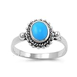Sterling Silver 11mm Turquoise Stone Ring (Size 5 - 9)
